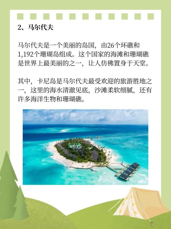其中,卡尼岛是马尔代夫最受欢迎的旅游胜地之一,这里的海水清澈见底,沙滩柔软细腻,还有许多海洋生物和珊瑚礁。