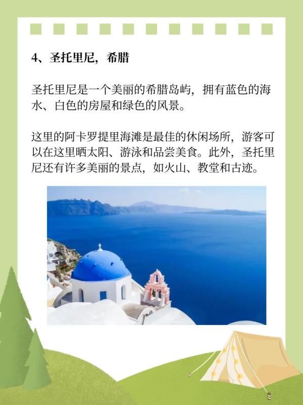 圣托里尼是一个美丽的希腊岛屿,拥有蓝色的海水、白色的房屋和绿色的风景。
