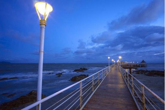 浪漫海岸景区位于茂名市电白区博贺镇,是广东省内拥有5.3公里私家海岸滨海旅游度假区。浪漫海岸是以”浪漫”为主题的度假区,这里充满东南亚异域风情,是集旅游观光、休闲度假、海上娱乐、商务会议、婚礼庆典、拓展训练、美食购物等为一体的综合性旅游度假区。