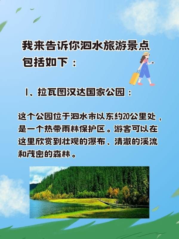 这个公园位于泗水市以东约20公里处,是一个热带雨林保护区。游客可以在这里欣赏到壮观的瀑布、清澈的溪流和茂密的森林。