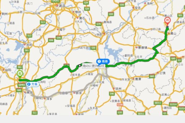 孙家集立交→ 德上高速 → 济广高速 → 商南高速 → 京港澳高速 → 武汉绕城高速 → 武深高速 → 京港澳高速 → 长沙北枢纽 → 杭长高速 → 三一大道 → 万家丽路高架 → 万家丽中路辅路 → 万家丽中路 → 人民东路 → 人民中路 → 车站南路 → 车站中路。