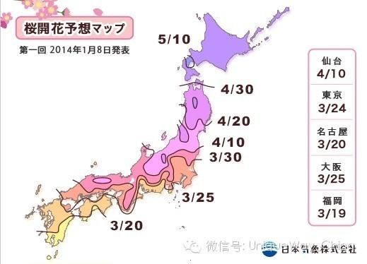由于东日本和西日本地区去年10月的温度比往年略微暖和,11月份气温比往年略微寒冷,因此樱花开放可能比往年略微提前。