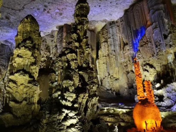 位于毕节市织金县官寨苗族乡,是世界地质公园,也是中国十大奇洞之一。是一个多层次、多类型的溶洞,洞长6.6公里,最宽处175米,相对高差150多米,全洞容积达500万立方米,空间宽阔,有上、中、下三层。