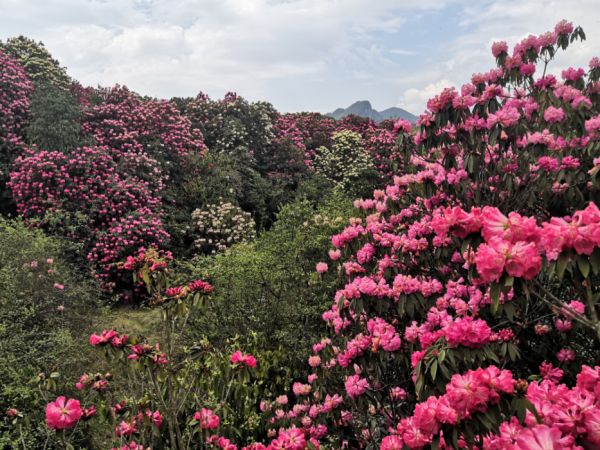 位于毕节市大方县,满山姹紫嫣红百里杜鹃,总面积约为125.8平方公里,被人们公认为是最艳丽的名花之一,这里分布着马缨、鹅黄、百合青莲、紫玉等4属,23个杜鹃花品种,以花树密集、花类繁多、花色丰富、花景壮观闻名于世,是景观最美的一处大花园。