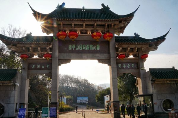 宝华山,层峦叠嶂、逶迤环绕、形似莲花,主峰海拔437.2米,宛如花蕊,高踞群山之中,宝华山原名花山,因盛夏时黄花满山而得名,因古时“花”和“华”通用,亦称华山。