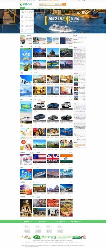 例如下面这个仿途牛门户首页模板,它就包含了线路、酒店、门票、租车、团购、问答等功能模块。分类清晰,出境游、国内游、周边游、自驾游,主题游一应俱全。产品突出,通过顶部Banner,丰富的旅游场景图片和攻略点评吸引游客目光。