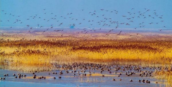 5、崇明东滩候鸟区:在崇明岛的东部,有一个滩涂侯鸟保护区,是世界上为数不多的野生鸟类集居、栖息地之一,目前正在申报世界重要湿地。在观鸟的季节里,可以看到大片鸟群像天上的白云般飘移而至,景象颇为壮观。