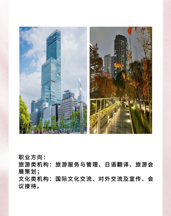 旅游类机构:旅游服务与管理、日语翻译、旅游会展策划;