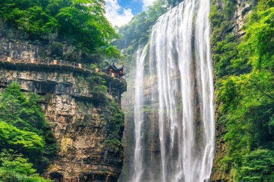 三峡大瀑布景区,位于宜昌市夷陵区黄花乡境内,是展示震旦纪、奥陶纪、寒武纪等多个地质年代的天然地质博物馆,以山青、水秀、洞奇、瀑美著称。景区内空气清新,是个天然的大氧吧,即使在夏季这里也是凉爽宜人。