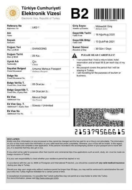 电子签证将会以PDF格式发送到您的电子邮箱,将其打印出来即可,在土耳其期间也请随身携带。