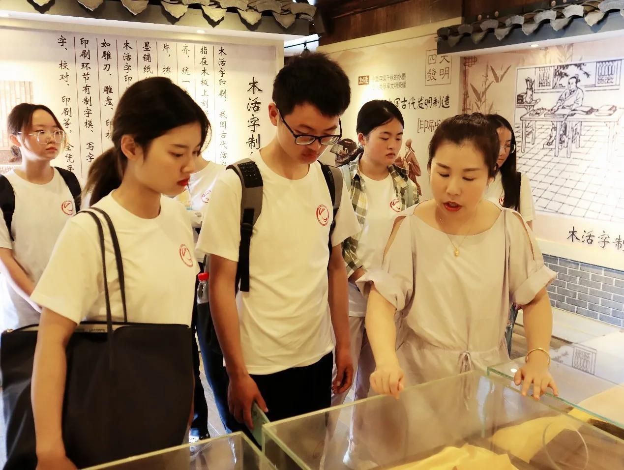 图为实践团队成员在参观木活字印刷体验馆。 唐心雨 摄