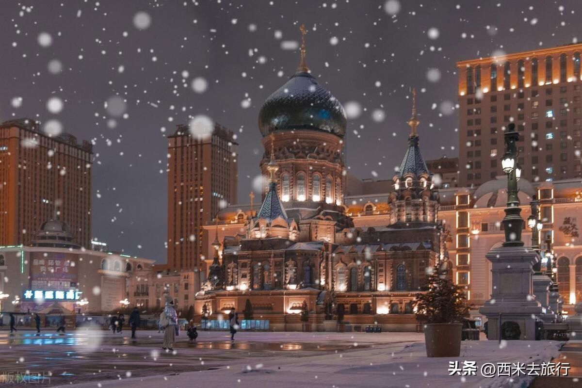 哈尔滨的冰雪大世界是世界上最大的室外冰雪主题乐园,有各种冰雕艺术作品和冰雪娱乐项目。此外,还可以游览中央大街、索菲亚教堂等著名景点。