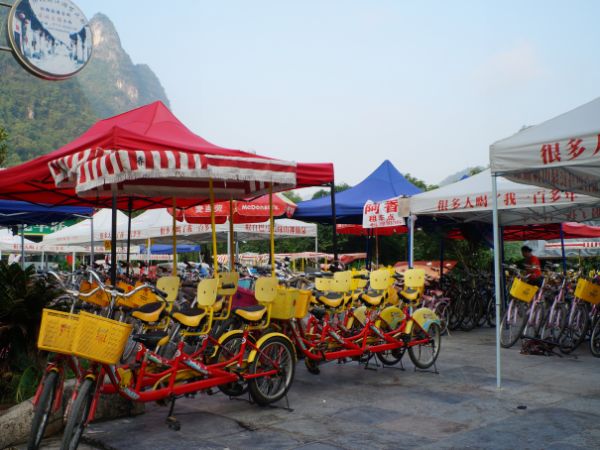 游览阳朔,推荐选择自行车游览,这样既环保又方便。可以选择景点较为集中的遇龙河漂流、葡萄镇民俗村和十里画廊,也可以选择一些小路和小桥,沿着田间小道漫步,尝尝当地的土特产,感受阳朔田园的淳朴风情。