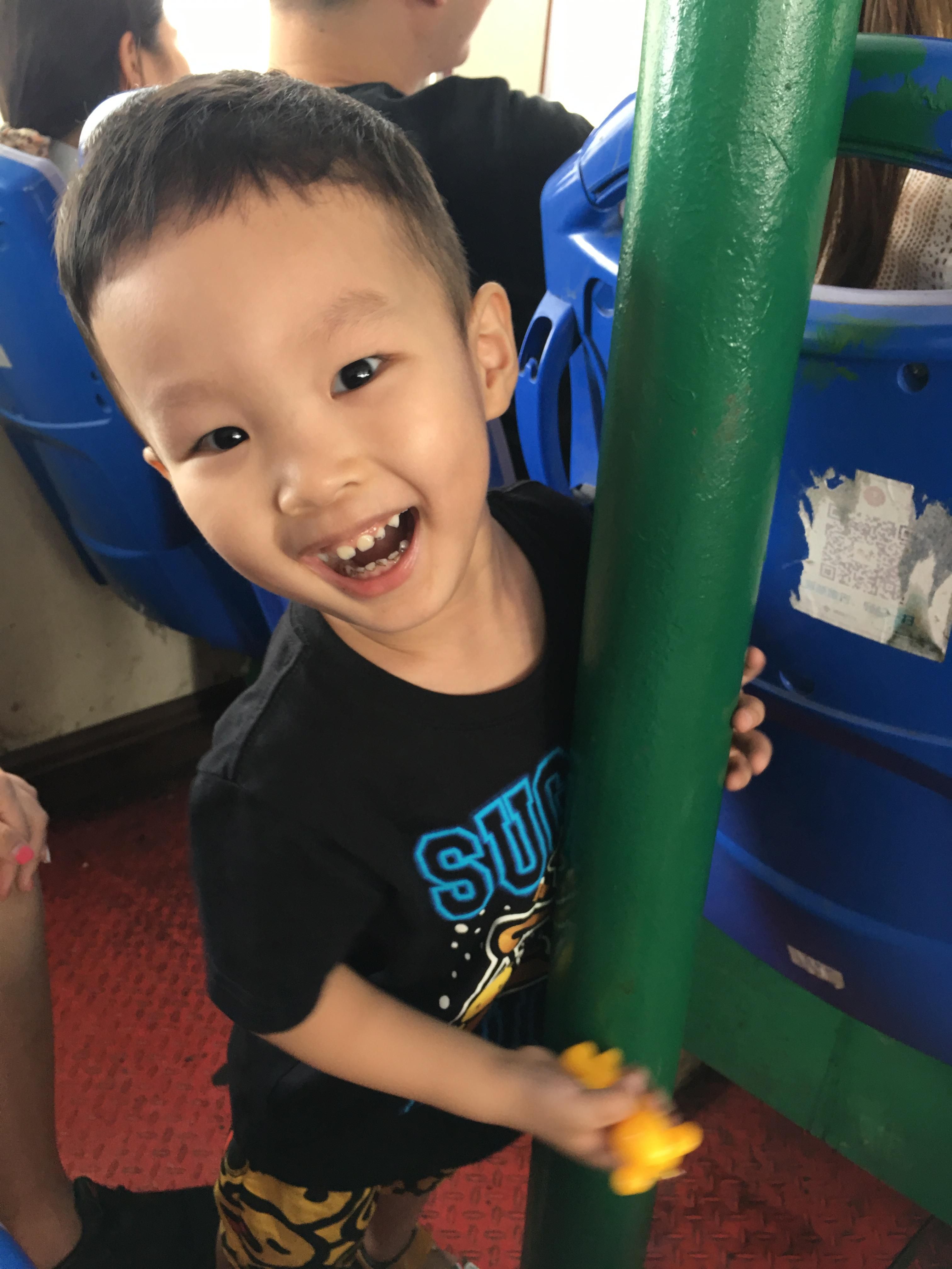 小朋友第一次坐船,还是很激动的,船上其他小朋友都吐了,这娃却嗨的很