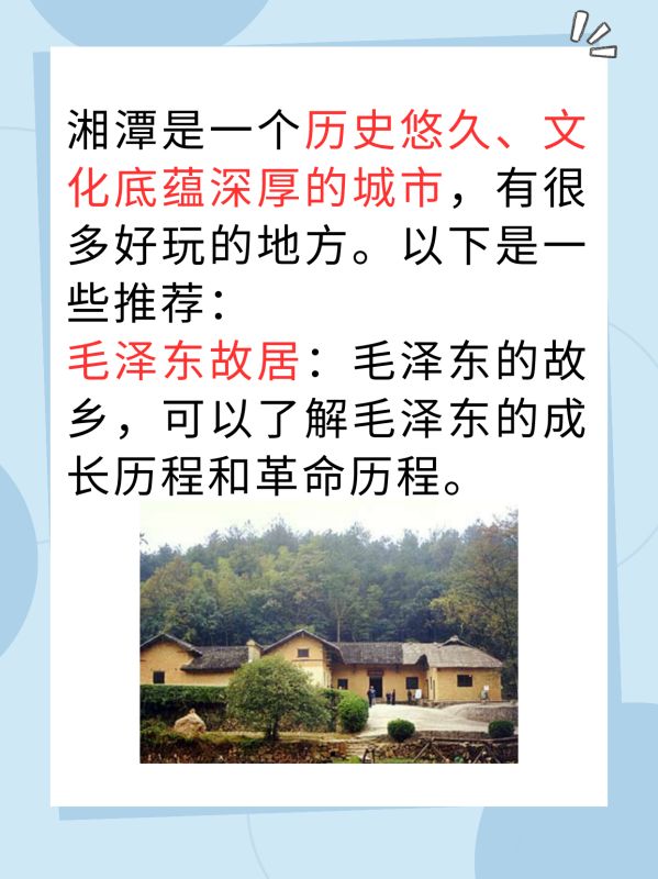 总之,湘潭有许多值得游客参观的旅游景点,无论你喜欢历史文化、海洋动物、自然风光还是休闲娱乐,这里都能找到适合自己的地方。不妨到湘潭走一走,看一看,感受这里的美好风景,品味这里的浓郁文化。