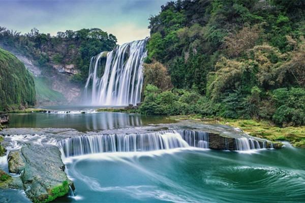 黄果树瀑布因是以当地的一种常见的植物——黄葛榕的谐音“黄果树”而得名。黄果树瀑布以其雄奇壮阔的大瀑布、连环密布的瀑布群而闻名于海内外,十分壮丽,并享有“中华第一瀑”之盛誉。