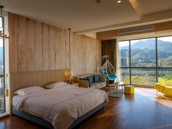 环境幽静雅致,是国内为数不多的五星级国宾馆之一,被金庸赞作每一扇窗户都是一幅风景画,还可以近水楼台泡红珠山森林温泉。