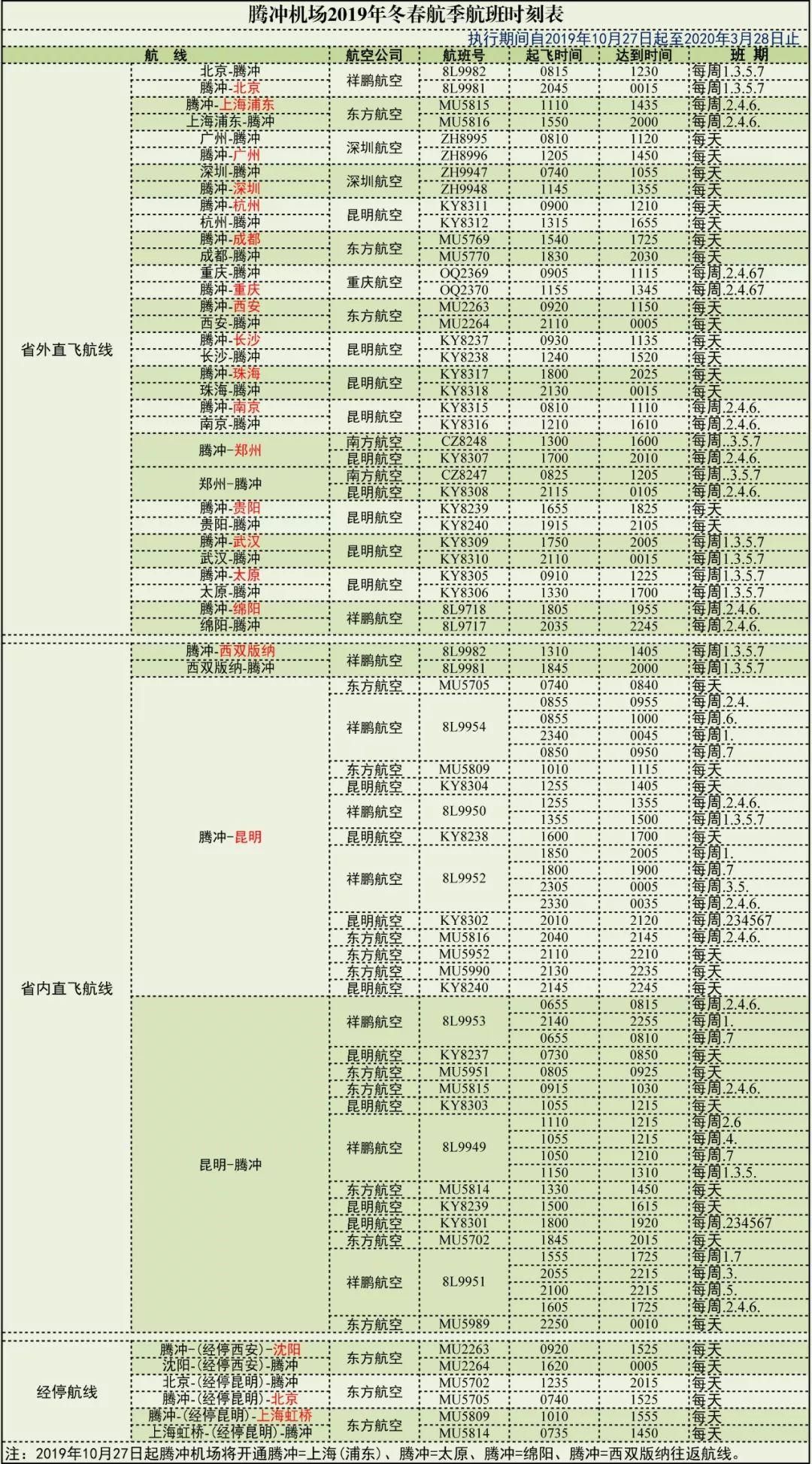 10月29日,腾冲机场开通,腾冲直飞上海往返航线,全程只需4小时。
