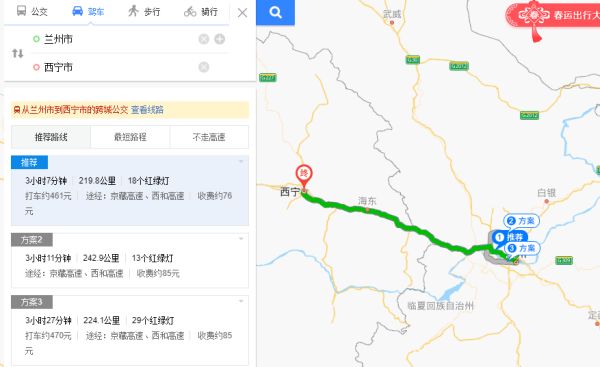 兰州到西宁 |全程 约247.4公里/3小时28分钟兰州市 1.兰州市内驾车方案