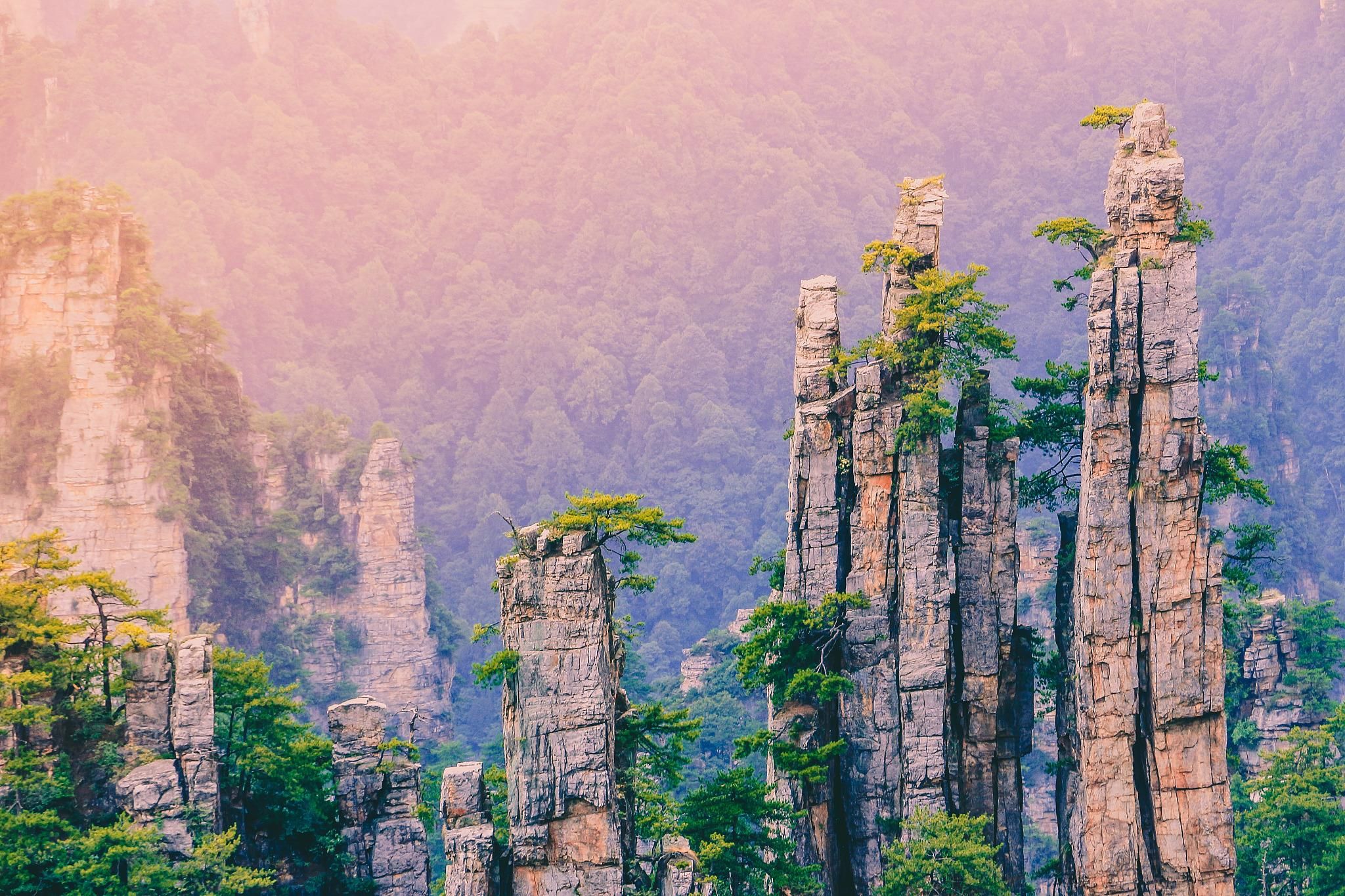 位于湖南省的张家界以其奇特的地貌和壮丽的自然景观而闻名于世。这里有世界上最高、最密集的石柱群和峰林群,还有壮观的玻璃桥和峡谷景区,让人流连忘返。