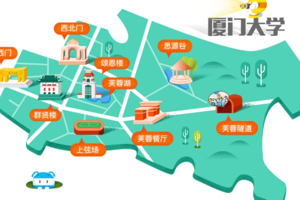 必去的地方有芙蓉湖、情人谷、上弦场、芙蓉隧道等等,最后还可以从白城小门(也叫北门)出去,到白城海滩逛逛。校内有厦门大学人类博物馆和鲁迅纪念馆。前者珍藏了史前时期至现代有关人类及其发展的文物资料,特别是反映闽南和台湾文化的文物,以及福建古代与国外的交往,尤其是泉州海外交通的史迹等,极富特色和价值。