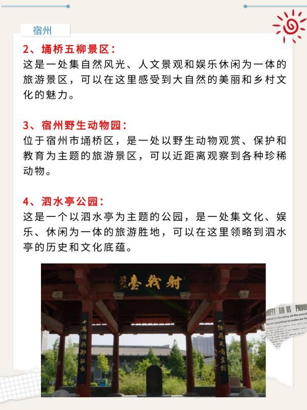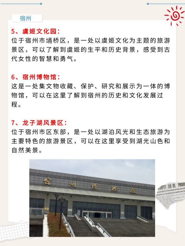 宿州的旅游景点还有很多,每个景点都有其独特的魅力和历史文化背景,值得游客细细品味。无论是对自然风光感兴趣,还是喜欢探索历史文化,宿州都能满足你的需求。
