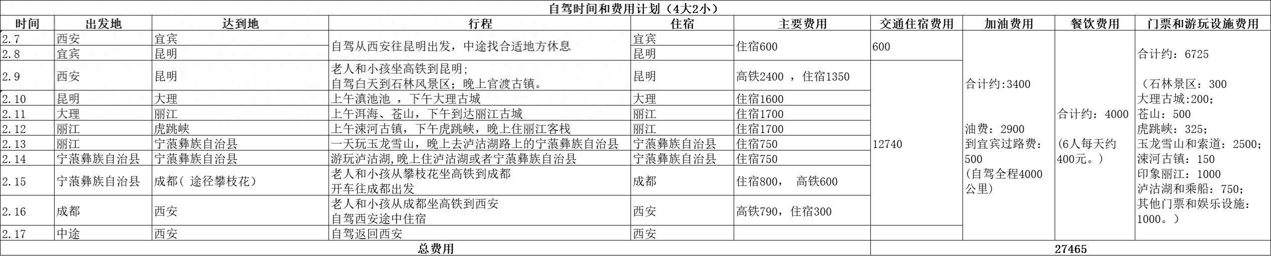 云南的网友,计划春节期间从西安到云南游玩,时间计划2.8号-2.17号。 4大2小一家6口,请问以下安排是否合适?