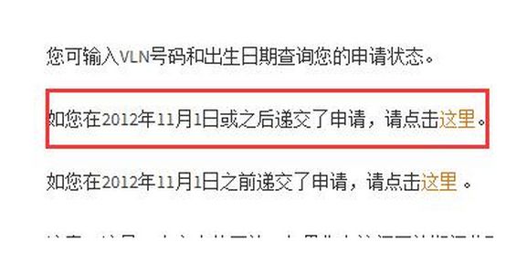 2、进入页面之后点击“如您在2012年11月1日或之后递交了申请,请点击这里”。