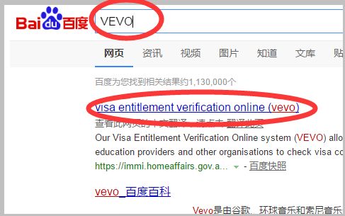 1、首先在百度搜索中输入VEVO,并点击打开官网。
