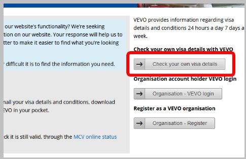 3、在页面右侧点击选择"Check your own visa details with VEVO"。