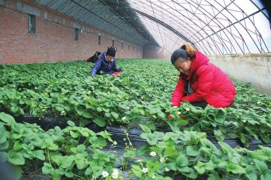 草莓大棚里弥漫着淡淡清香。纷至沓来的游客迫不及待地走过窄窄的过道,仔细挑选着熟了的草莓,体验采摘乐趣。