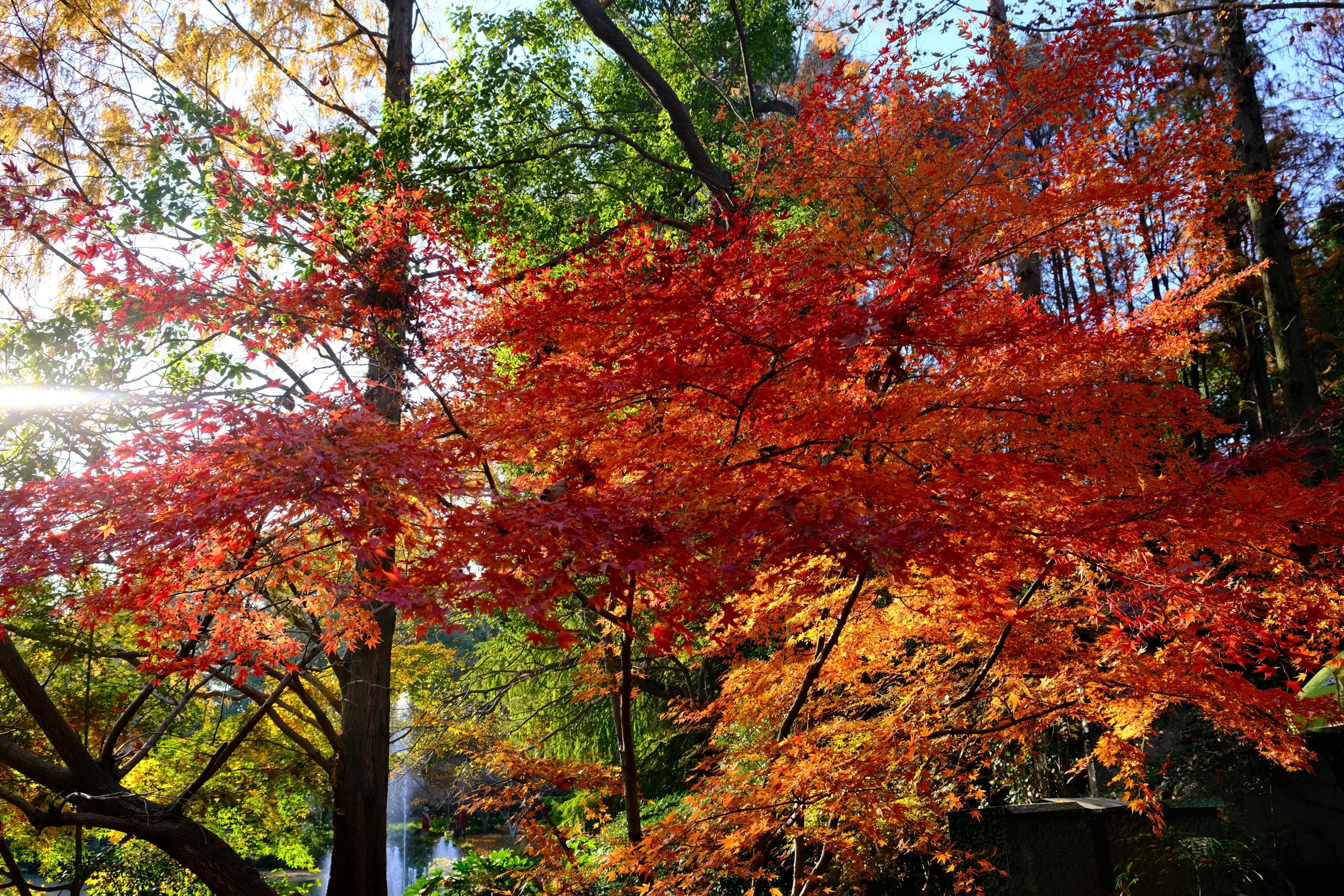 抬头望去,是那如洗的蓝天,如同一个巨大的画布,映衬着红叶的美丽。那种深邃的蓝色和火红的树叶形成鲜明的对比,让人感到一种深深的宁静和美丽。每一口深呼吸,都仿佛能感受到大自然的温暖怀抱。