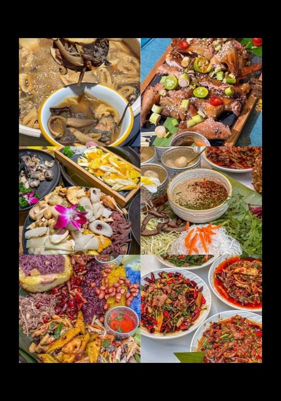 野生菌手抓饭:傣家特色,去云南一定要去西双曼傣傣味云南特色菜吃一次可以吃十几个傣寨特色菜,椰子冰沙-奶香扑鼻,香浓可口,一口就到西双版纳