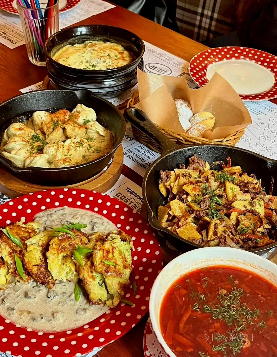 俄罗斯人的饮食习惯独特,早餐简单,午餐通常包括冷盘、汤、肉类/鱼类配菜和甜点。菜的顺序在他们看来是不能颠倒的。