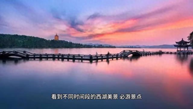 ·1.西湖:西湖是杭州的标志性景点,被誉为"人间天堂",是全国唯一个不收费的5A级旅游景区。西湖有多个著名的景点,如苏堤春晓、曲院风荷、平湖秋月、断桥残雪、花港观鱼、柳浪闻莺、雷峰夕照、南屏晚钟等。此外西湖音乐喷泉也是不容错过的体验。