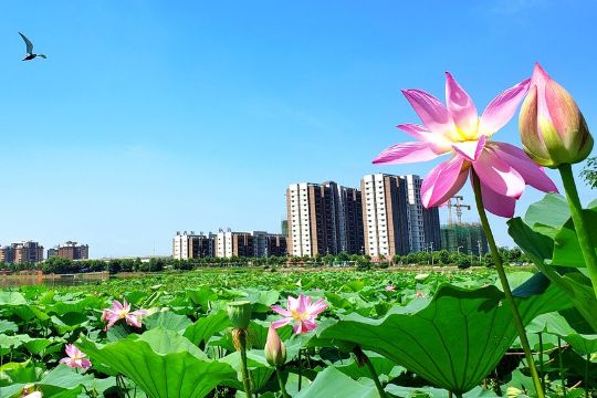 是西北最大的荷花观赏地。盛夏时节,荷花盛开,缓缓走在木栈道上,放眼望去片片新绿中摇曳着朵朵粉荷,微风吹过还带着阵阵清香,太治愈了太解压了。