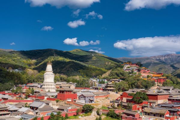 五台山位于山西省东北部忻州地区五台县东北隅,是我国著名的佛教四大名山之一,与四川峨眉山、浙江普陀山、安徽九华山齐名,为国内外洲人所向往。五台山座落于“华北屋脊"上,最高海拔达3058米。这里,峰峦连绵,山岳交错,形如虎踞,势如龙蟠,总面积为2837平方公里。五台山由五座山峰环抱而成。