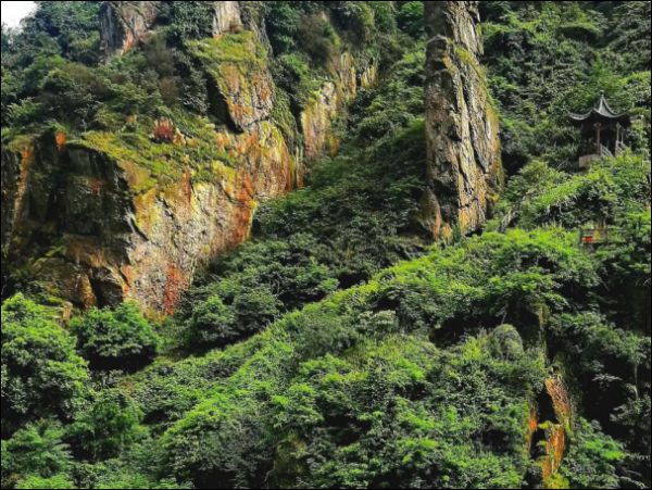 距洞口县城12公里,该处群峰耸峙,山峦陡峭入云,素有“南岳归来不看山,半江归来不看岳”之说。每年春雨之时,一川蜿蜒而出,虽峰回路转,水流湍急,总呈“半江清澈半江浊”之奇景,因而得“半江”之名。五十年代,拦河筑坝,建半江水库,水色澄碧,似一块璞玉镶嵌在奇峰叠峦之间。