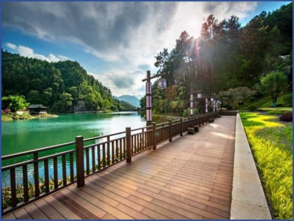双桂山风景区是潼南的著名景点之一,这里是临江而建,周围群山环绕,风景绝佳,景区内有多条步行道,步行道两侧种满了各种各样的植物,春季时桃花、梨花争相绽放,秋天时枫叶红遍山林,是摄影爱好者的天堂。