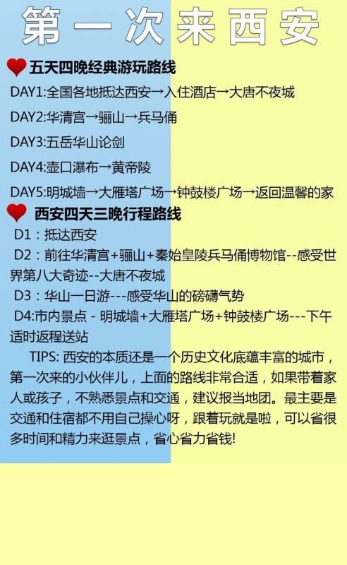 TIPS:西安的本质还是一个历史文化底蕴丰富的城市,第一次来的小伙伴儿,上面的路线非常合适,如果带着家人或孩子,不熟悉景点和交通,建议报当地团。最主要是交通和住宿都不用自己操心呀,跟着玩就是啦,可以省很多时间和精力来逛景点,省心省力省钱!