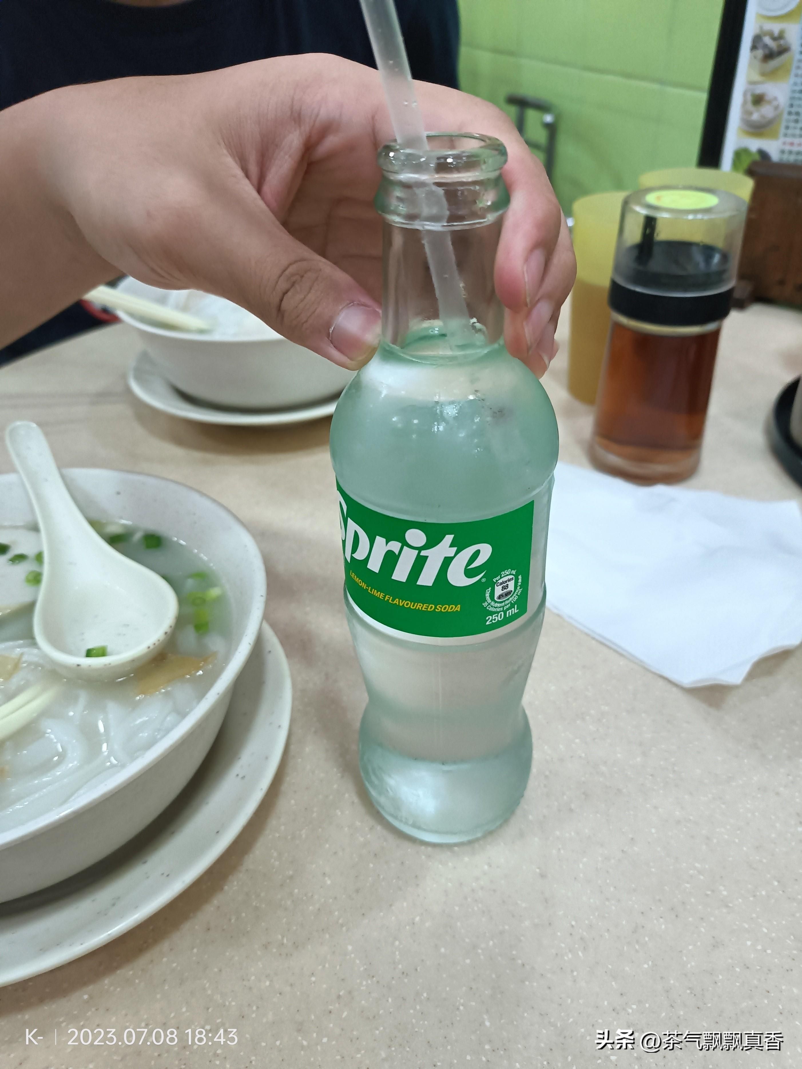 一碗的分量不大,汽水是那种小瓶的。