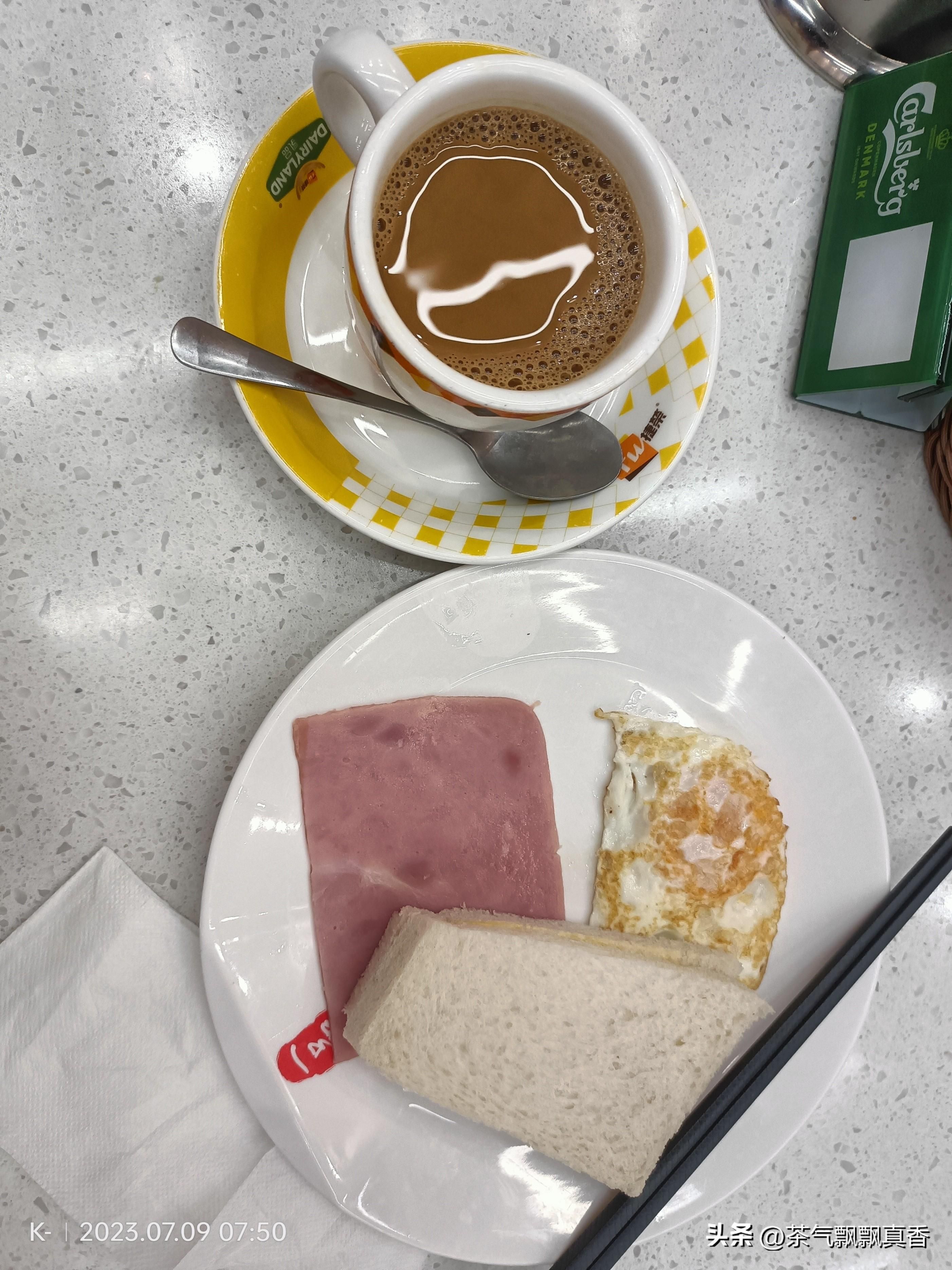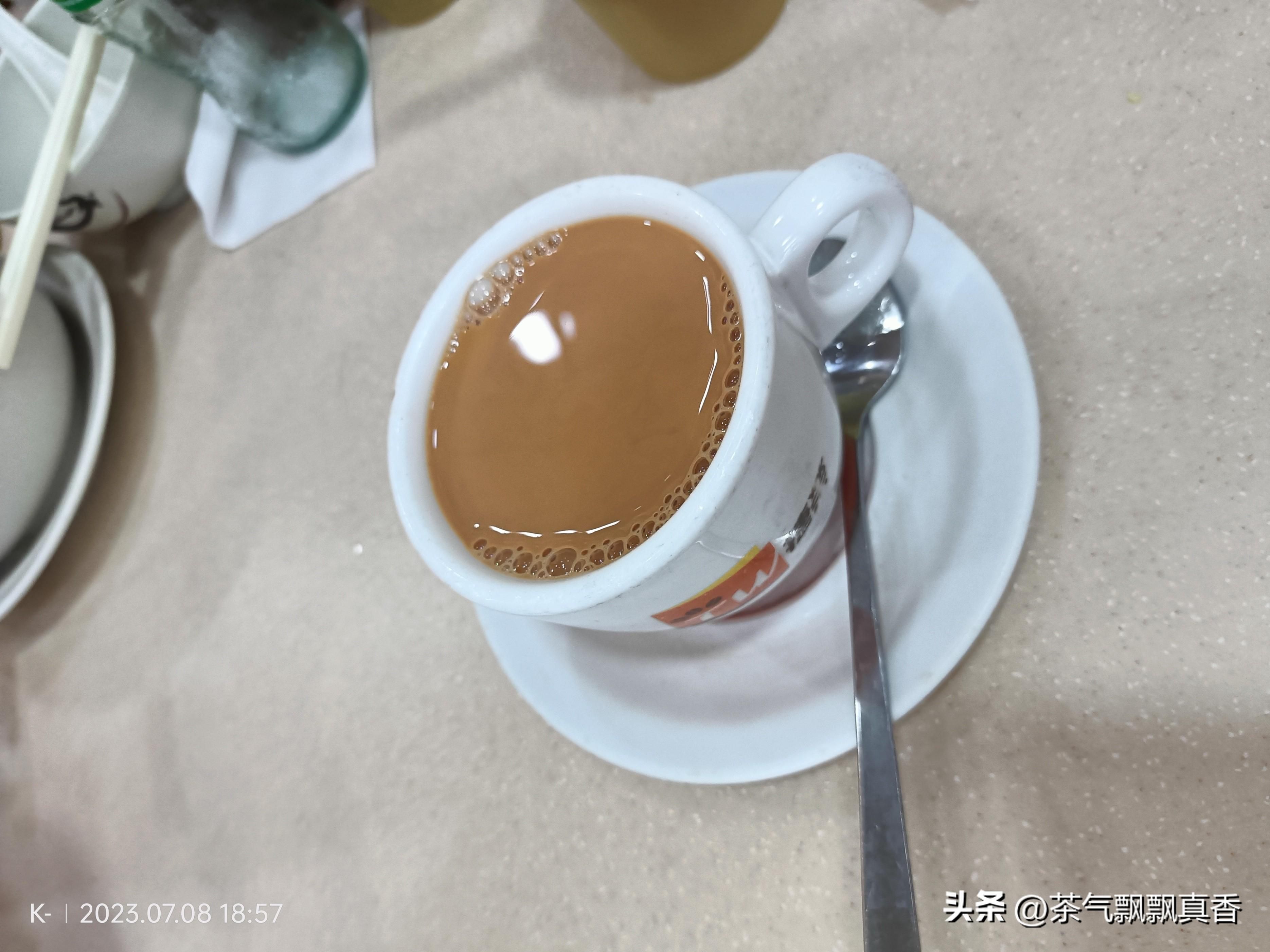 不过我觉得要汽水还不如要热奶茶,虽然那么小一杯,但是味道很浓郁,在内地的茶餐厅,奶茶也要十元一杯了。