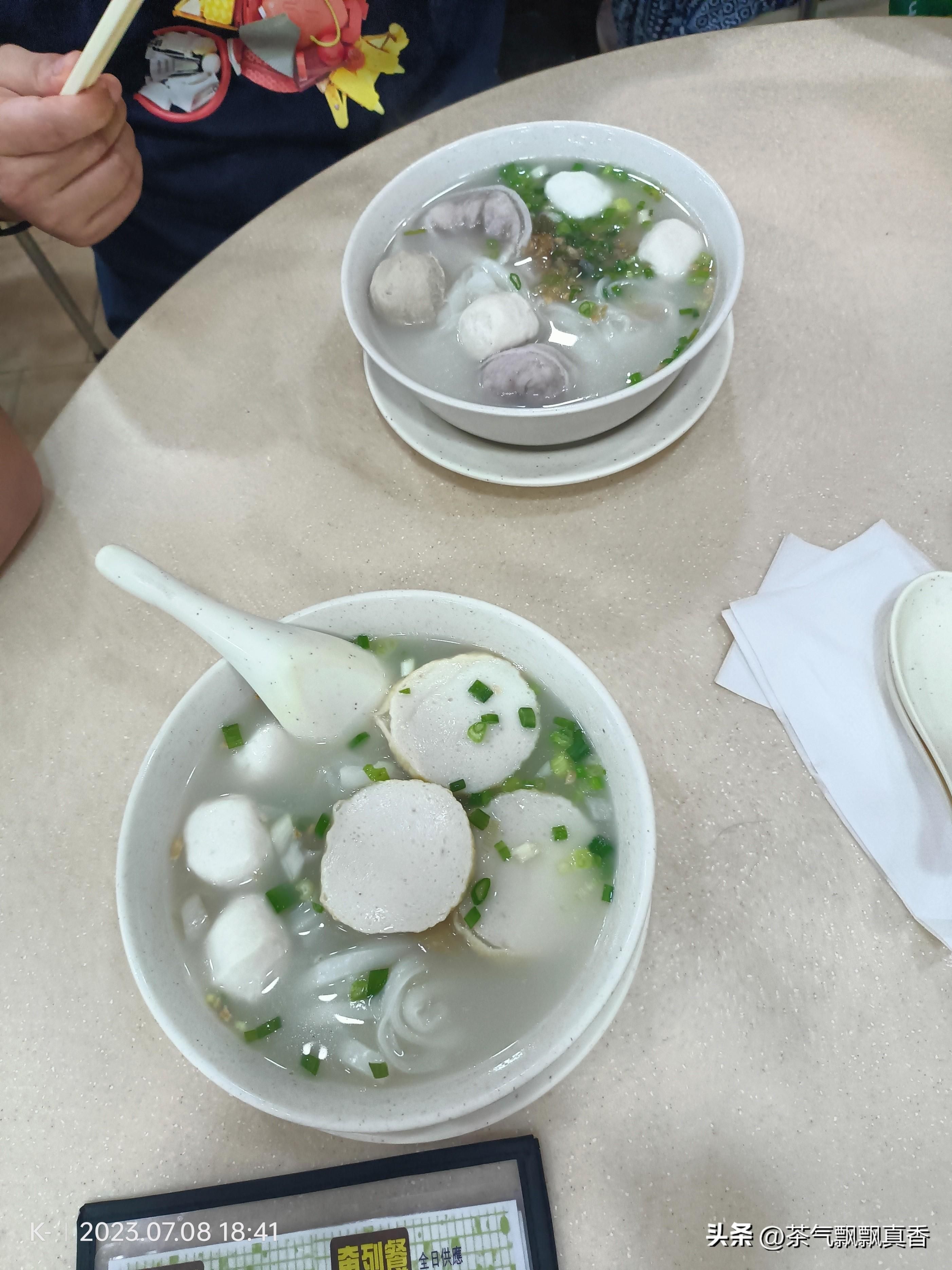 这是午餐,后来我们自己出去吃的晚餐,是街边的汤粉店,店看着有点旧,不大,里面有十张台的样子。