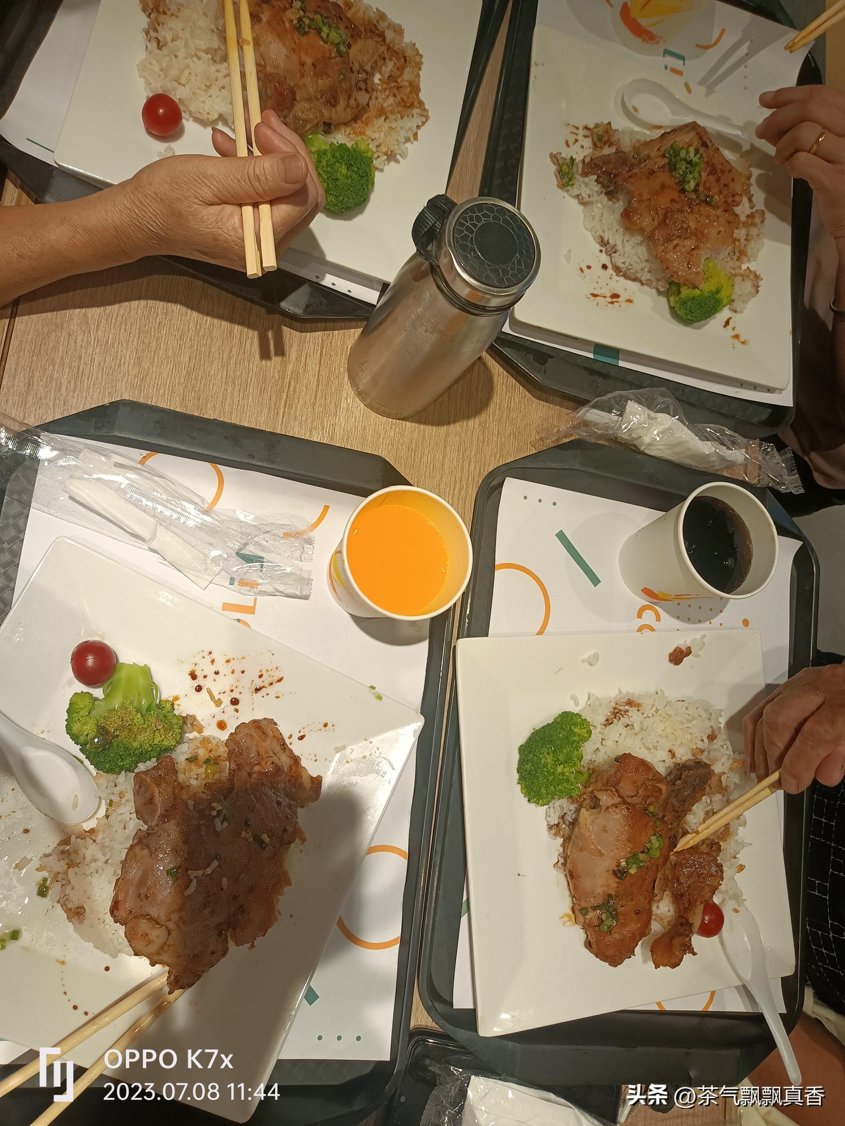然后我们在香港的午餐是去吃大家乐,每人一份的猪扒饭,配汽水。