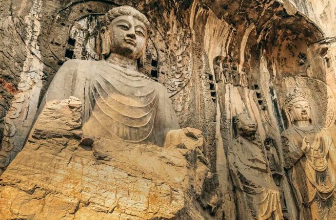 18、龙门石窟位于中国河南省洛阳市南郊白马寺西侧的龙门山上,是中国古代佛教石窟艺术的杰出代表之一,也是世界文化遗产。