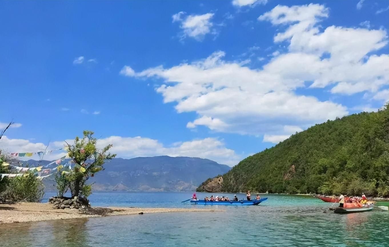 14、泸沽湖位于云南宁蒗县与四川盐源县之间,素有“高原明珠”之称。
