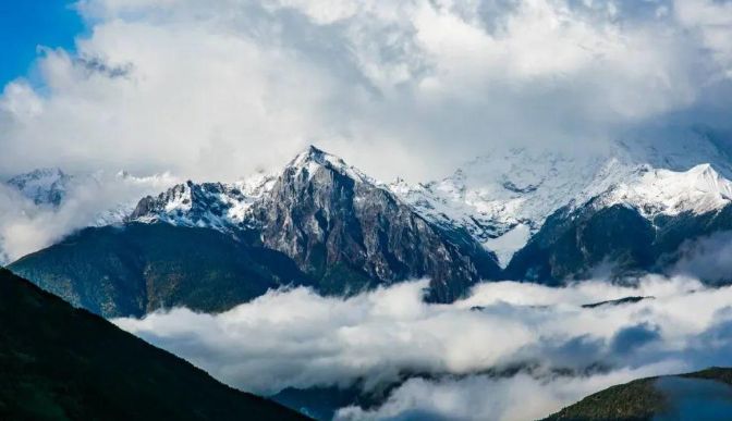08、南迦巴瓦峰:运气好时你会看南迦巴瓦峰上淡淡的云气蒸腾而上灵的云瀑悠然滑落,白缎般环绕着山腰,发着蓝色寒光的如剑雪峰,在云缝中若隐若现……
