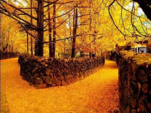 3、腾冲银杏村。一年只美20天的腾冲银杏村有古银杏树3000多棵,在阳光照射下一片金黄灿烂,微风吹来,小道上院子里银杏叶飘落,古朴的村落像铺了一层金色地毯。