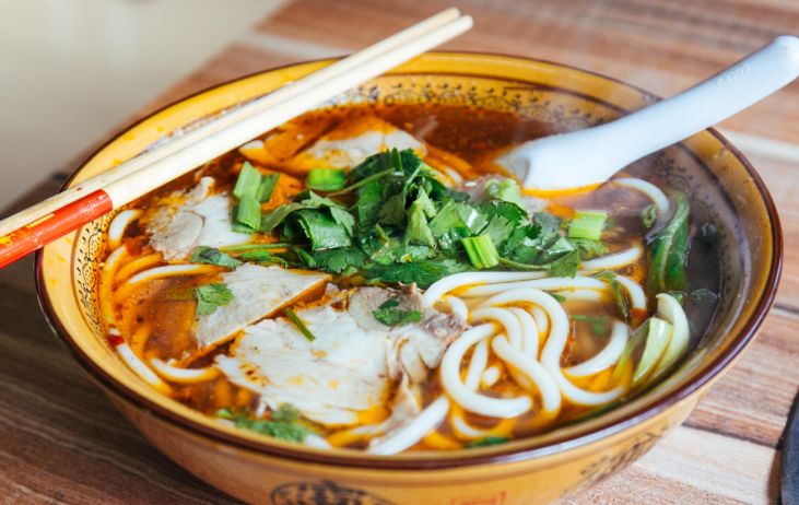 店里弥漫着浓郁的肉香和香料的味道,于先生一家坐下来点了几碗羊肉粉。端上桌的一碗碗热腾腾的羊肉粉,煮得鲜嫩的羊肉搭配上细腻的面条,让他们的味蕾陶醉其中。夹杂着各种香料的汤汁,滋味醇厚,让人回味无穷。