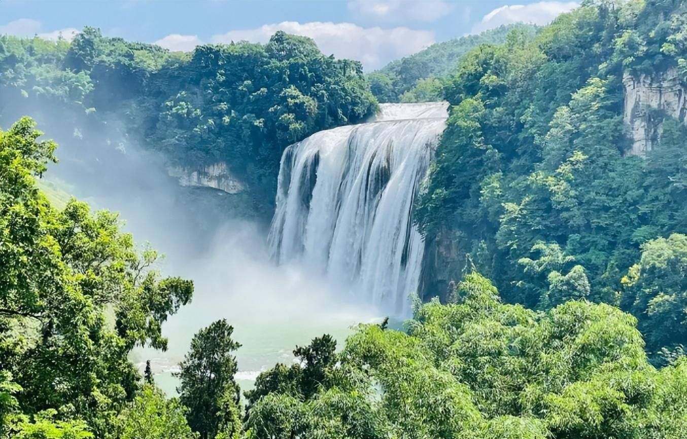 品尝完羊肉粉后,于先生一家踏上了探索贵州的旅程。他们来到了风景秀丽的贵州黄果树瀑布,瀑布水势磅礴,飞流直下,气势恢宏。他们在瀑布前尽情欣赏了这壮丽的自然景观,仿佛置身于仙境之中。